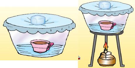 Resimdeki deneyde su dolu kabın içerisine boş fincan yerleştirilmiştir. Daha sonra kabın ağzı streç filmle kaplanarak üzerine buz konmuştur.