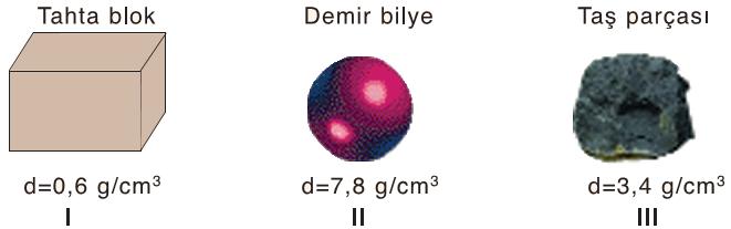 IV-3 g/cm3 olan I, II, III, IV nolu cisimler, içerisinde 2,4 g/cm3 yoğunluğa sahip sıvı bulunduran kap içerisine bırakılıyor. Bu sıvı içerisinde hangi cisim ya da cisimlerin batabileceğini bulunuz.