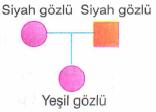 Aşağıdaki soyağaçlarında yeni oluşan bireylerden hangisinde, göz genotipinin saf ya da melez olduğu bilinemez? (insanlarda, "siyah gözlülük" geni "yeşil gözlülük" genine baskındır.)