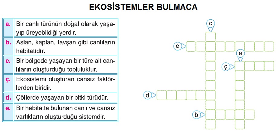 İnsan ve çevre (ekosistemler) konusu bulmaca