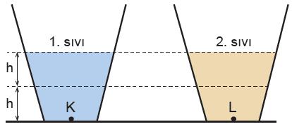 I. 1. sıvının yoğunluğu, 2. sıvının yoğunluğunun iki katı ise K noktasındaki basınç L’dekinin iki katıdır.