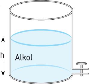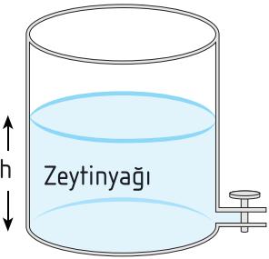 Aşağıdaki kapların hangisinin musluğundaki basınç en fazladır? (dcıva= 13,6 g/cm3, dsu= 1 g/cm3, dzeytinyağı= 0,8 g/cm3, dalkol = 0,7 g/cm3)