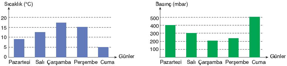 A şehrine ait 5 günlük sıcaklık ve basınç değerleri aşağıdaki grafiklerde gösterilmiştir.
