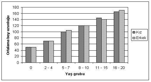 11 – 15 yaş grubunda kızlar erkeklerden daha uzundur.